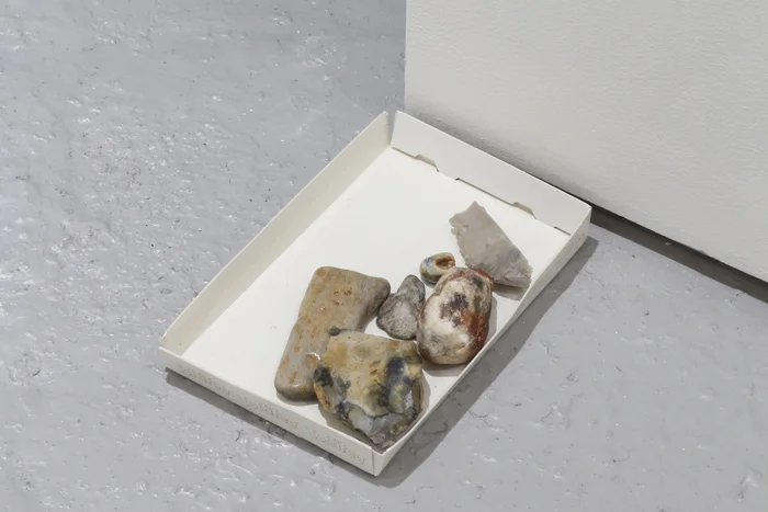 Found stones and cardboard
